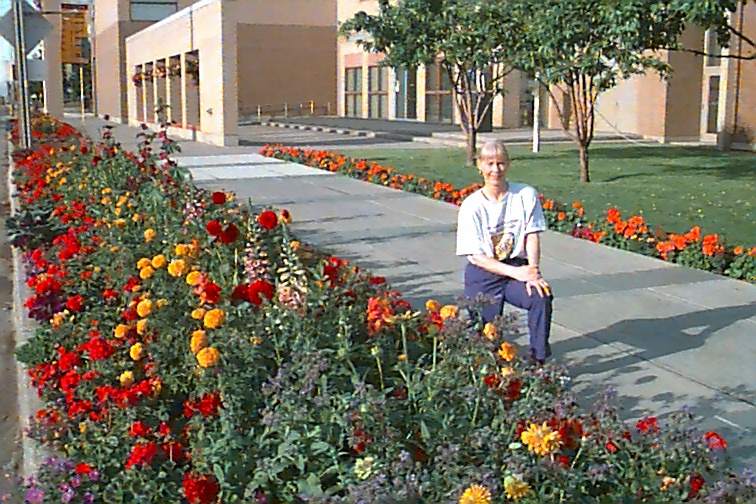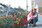 sidewalk or window boxes or in huge hanging baskets that line the downtown
