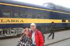 Our car was just seats but the car behind us had some tables in the first couple rows and that's where the kids visited. I went in and out of the dome. We rotated frequently so anyone that wanted a turn got to sit up there awhile. The train wasn't terrible crowded and from Denali into Fairbanks we had only about 60 passengers left. The park is the major destination coming and going. We got off there for just a few minutes when they were unloading. We got information on the hostel. When you get off the train personnel from all the lodges are lined up with signs trying to locate their guests.