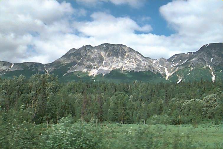 When we started out in Anchorage it was much cooler than the previous day and it was cloudy. The first three or four hours we went in and out of rain. As we went further north it began to clear and then was just beautiful. It's amazing that you can take a trip that long and only pass through a couple of small towns. This state is so under populated. The ENTIRE state of Alaska has less population than San Jose, California. Half of the population lives in the Anchorage area. Maps list the towns on them and population. It's like Hee Haw numbers on most!!! Population 42, 136, 304.....