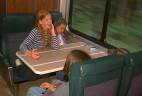 We were early at the train station and had an opportunity to do a lot of people watching. The terminal soon filled up and we watched as the train pulled in and the young crew gathered up. It reminded us very much of our train ride in Australia. We were on the domed car in this picture. The seating is very spacious and comfortable. We had a dining car up in the front of the train. It was just about an even 12 hour journey so we had all day to look out the window, visit, nap or read. Stacey found the kids on the train like a magnet so she was playing cards and being entertained with them most of the day