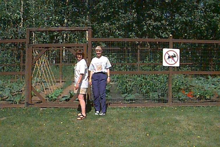 This is Beth's main garden (one of two big ones) I just love the moose sign. It is an electric fence so they are serious! She has broccoli, cauliflower, cabbage, peas, beans, carrots, and all kinds of things I've forgotten planted. She's got a soaker hose and irrigation system built in it and lovingly tends it. The two freezers in the basement indicate how they enjoy the benefits year round!