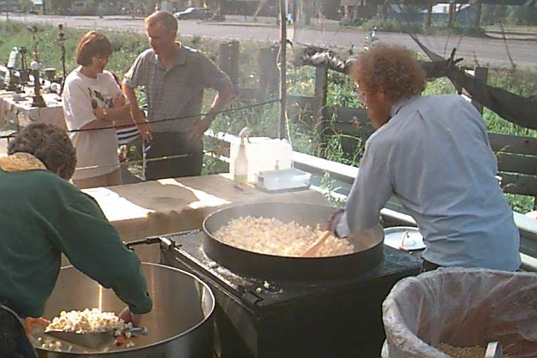 This character was part of the "entertainment" at the market. He had an unbelievable set up for popping sugar corn. We stood and watched him do two batches. It was a hot and fast paced job! In another setting he'd like looked just like a prospector! Here he just kind of looked like a "mad" scientist! We enjoyed watching and Rus captured it on video.