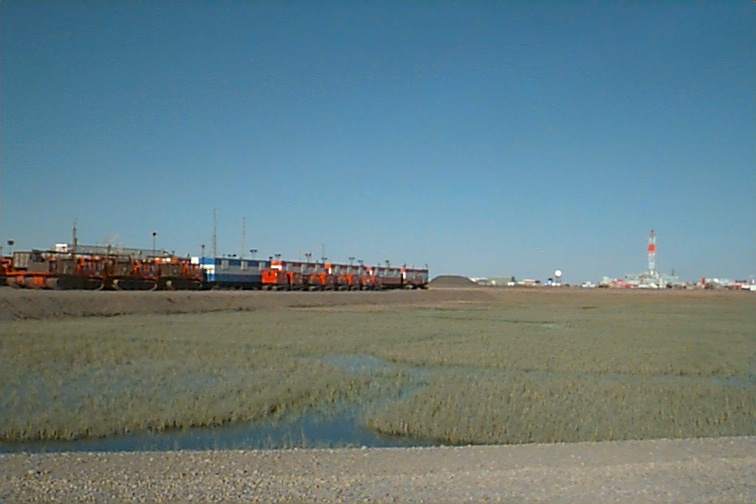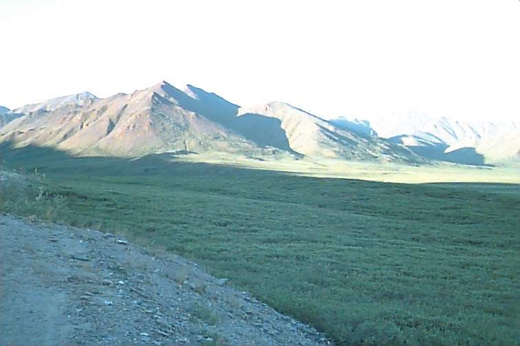 We drove all day and until about 2:00 a.m. It is daylight 24 hours that far north so it never was going to get dark. We found a little side strip near the river and pulled the car off to take a nap. We slept for almost three hours. I was noticing how much cooler it was when we hit the tundra. We left Stacey asleep on the back seat and started out driving again about 5:00 a.m. We pulled into Prudhoe Bay about 7:30. The rest of that day will be continued on the next page.