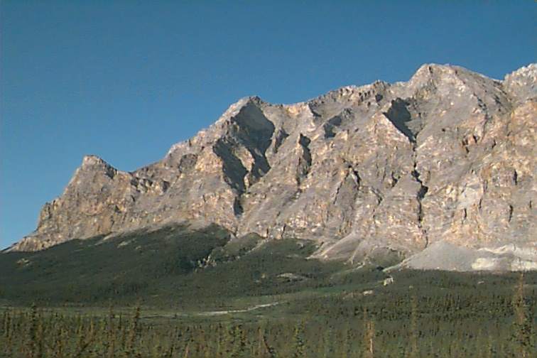 In one section we passed Slope Mountain which the Mile Marker told us had Dall Sheep on it last summer. We stopped to look and sure enough there were. They were so far away they just looked like spots of snow or rocks but we could pick them out using the 360 on the video camera. We'll get the binoculars out coming back!