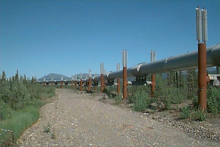 The pipeline runs the entire distance. Sometimes it is buried and others it is above ground. It is constructed to be forgiving for frozen soil, earthquake or whatever might occur. Sometimes it is close to the road and other times it is way off to one side or the other. You never quite lose it though. Markers are placed every mile and are numbered in the opposite direction of the road markers. We used a Mile Marker book that gives a complete description of ANY thing you might see or expect at any point along the road. It was wonderful to have it to travel with.