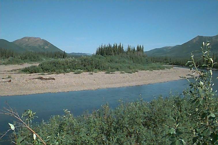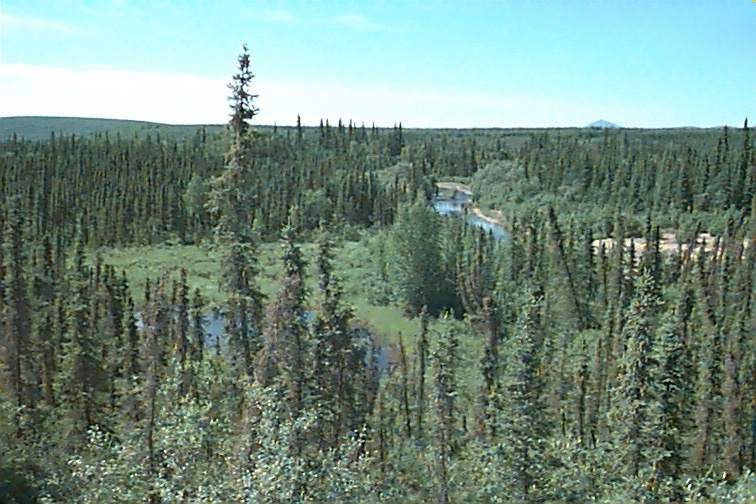 The mountain pass was beautiful and we just loved the views of the mountains and the changes as they occurred. They tree line here is about somewhere over 2000 feet - that's pretty low by usual standards. White and black spruce are the most common trees. I've been fascinated by their shapes. They are just about straight up. The limbs don't go far out to the sides at all. The pinecones are ALL clustered at the top. My theory is that's so they can blow out and spread since the tree can't bend too far. The black spruce are the short stubby ones growing on permafrost or poorer soil. The white spruce will grow taller. In the Fairbanks area you saw birch and aspen and lots of cottonwoods but they ceased along this route.