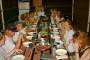 table. After the hearty dinner of steaks, sausages, potatoes, grilled